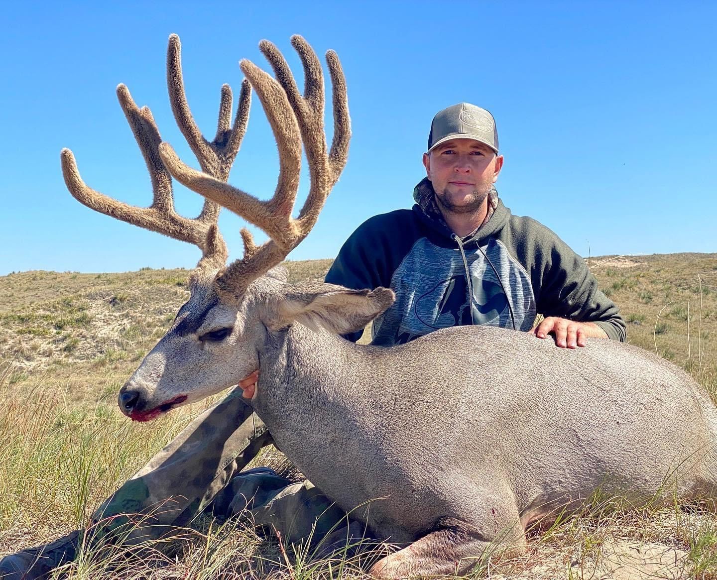 September archery hunting is warm and can be very rewarding as the bucks are in bachelor groups and patternable. October brings the pre-rut when the bucks separate and are quite often alone for easier stalking. The temps cool down and the action heats up towards the end of October so if interested in an archery hunt, a non-refundable deposit of 50% guarantees your spot. Please call 308-360-0664 for more information. You can also email emma@deermeadowsoutfitters.com for pricing and availability.